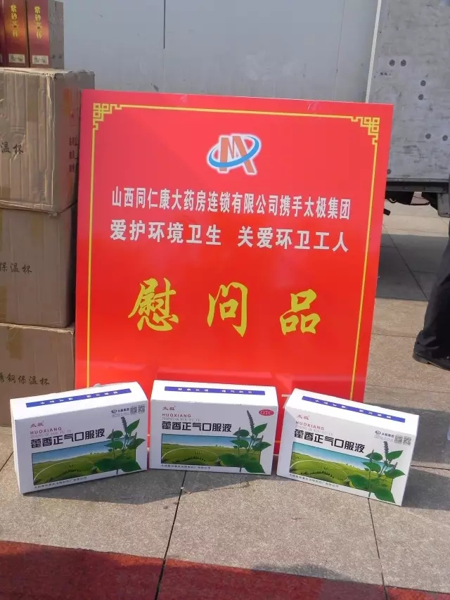 能征敢戰(zhàn),奮勇當(dāng)先,山西同仁康大藥房連鎖有限公司為積極響應(yīng)離石區(qū)“聯(lián)創(chuàng)”活動在7月20日參加了離石區(qū)工商聯(lián)(總商會)主持開展的“愛護(hù)環(huán)境衛(wèi)生、關(guān)愛環(huán)衛(wèi)工人”夏季送清涼活動。活動期間,山西同仁康大藥房連鎖有限公司贈送了價值5000元的慰問品,彰顯了同仁康勇于承擔(dān)責(zé)任,回報社會的企業(yè)精神。